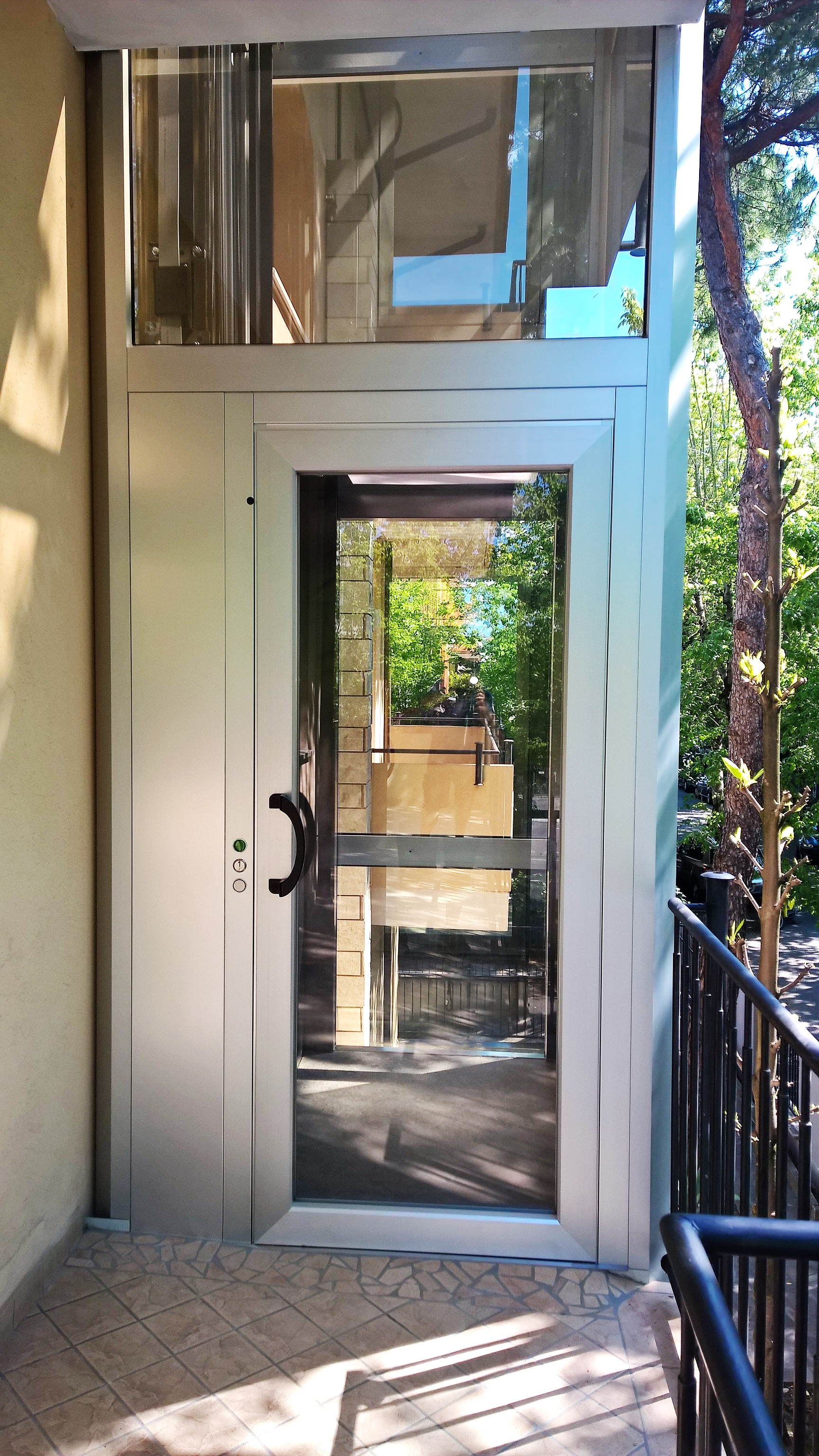 Minilift da esterno in posto pubblico, struttura in acciaio inox